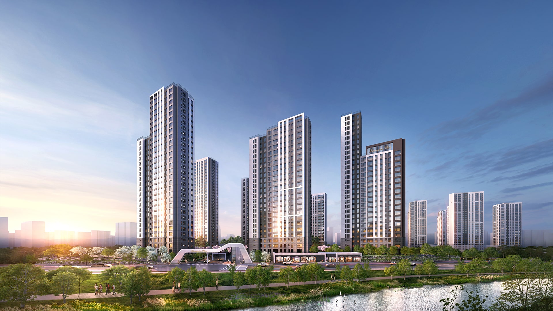 3) 단지·커뮤니티: 지상차 없는 공원 동선, 테마형 조경과 생활시설